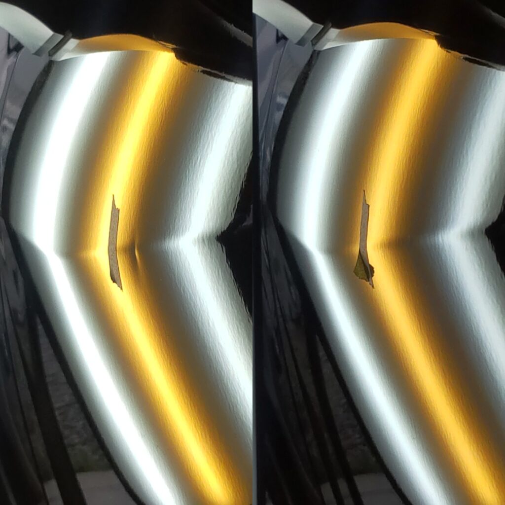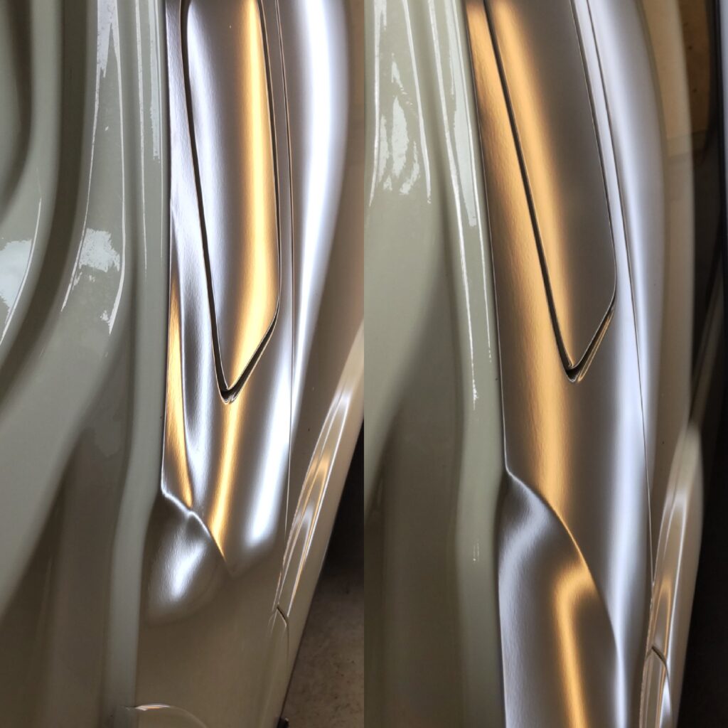車の凹みをパテ付けや塗装をしないでオリジナル塗装を残したまま修復するデントリペア。
