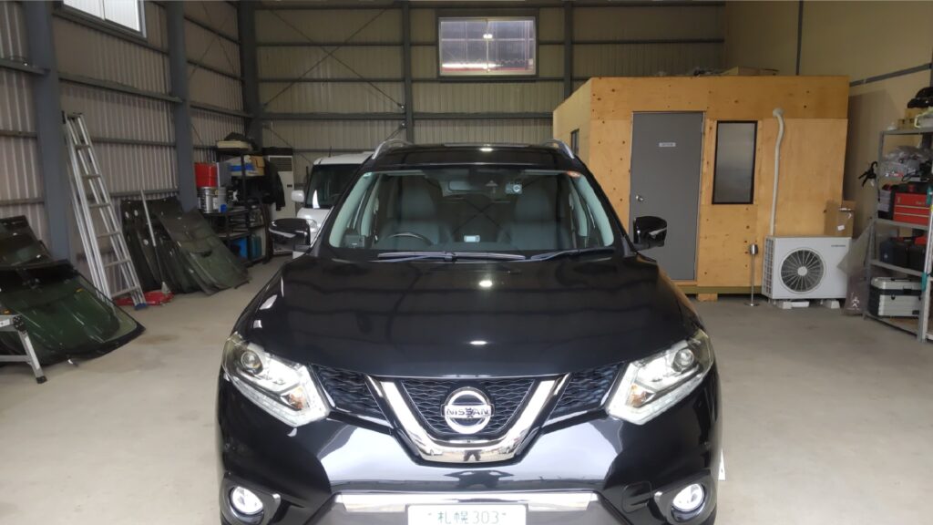 本日、当店ホームページをご覧頂きご来店頂いたお客様で日産 エクストレイルのワイパー傷のガラス傷取り研磨をさせて頂きました。