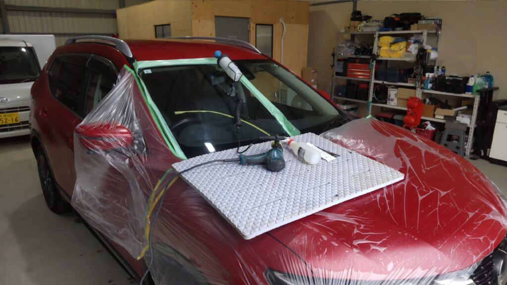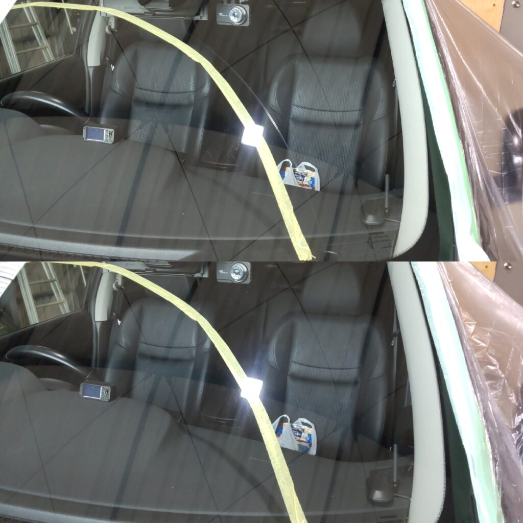 日産 エクストレイルのワイパー傷のガラス傷取り研磨