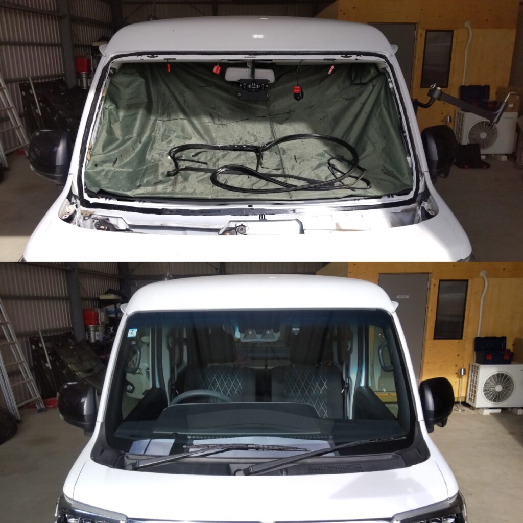 ダイハツ ハイゼットワゴンのフロントガラス交換をさせて頂きました。