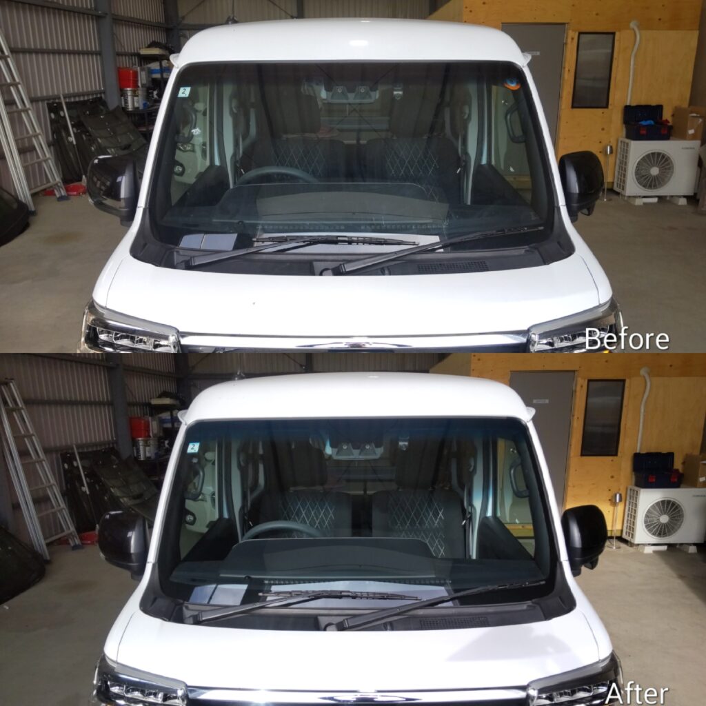ガラスの傷を研磨で綺麗に再生するガラスキズ消し研磨やガラス交換の事なら全て自社施工で特定整備認証工場の創業10年の実績の当店にお任せ下さい。