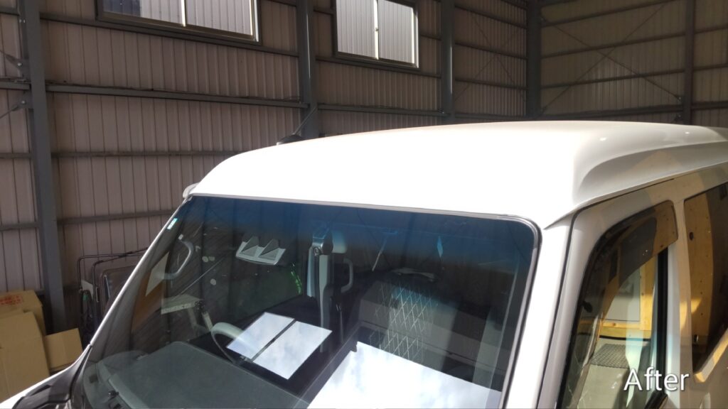 純正フロントガラスと同じ仕様で半額程度の新品社外フロントガラス(自動ブレーキ制御カメラ対応)に交換させて頂きました。