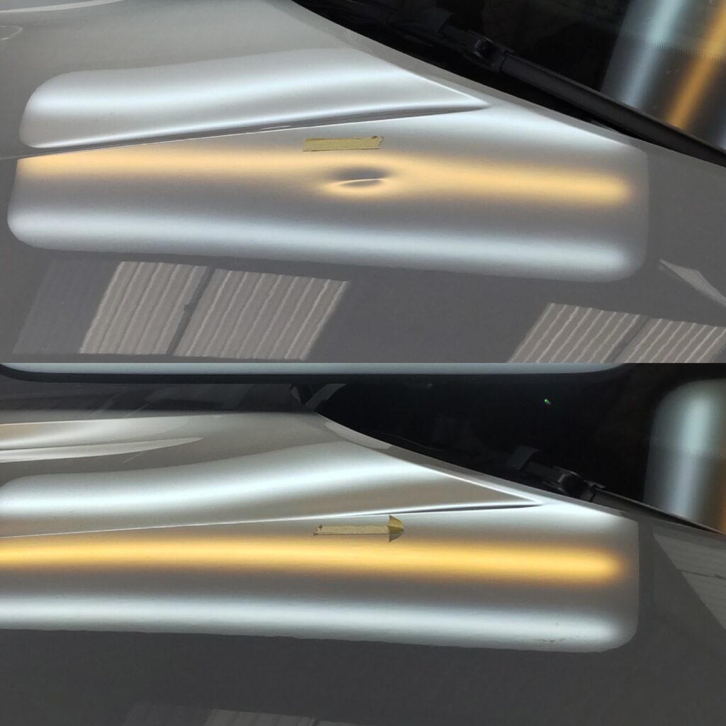 車の凹みをパテ付けや塗装をしないでオリジナル塗装を残したまま修復するデントリペア。