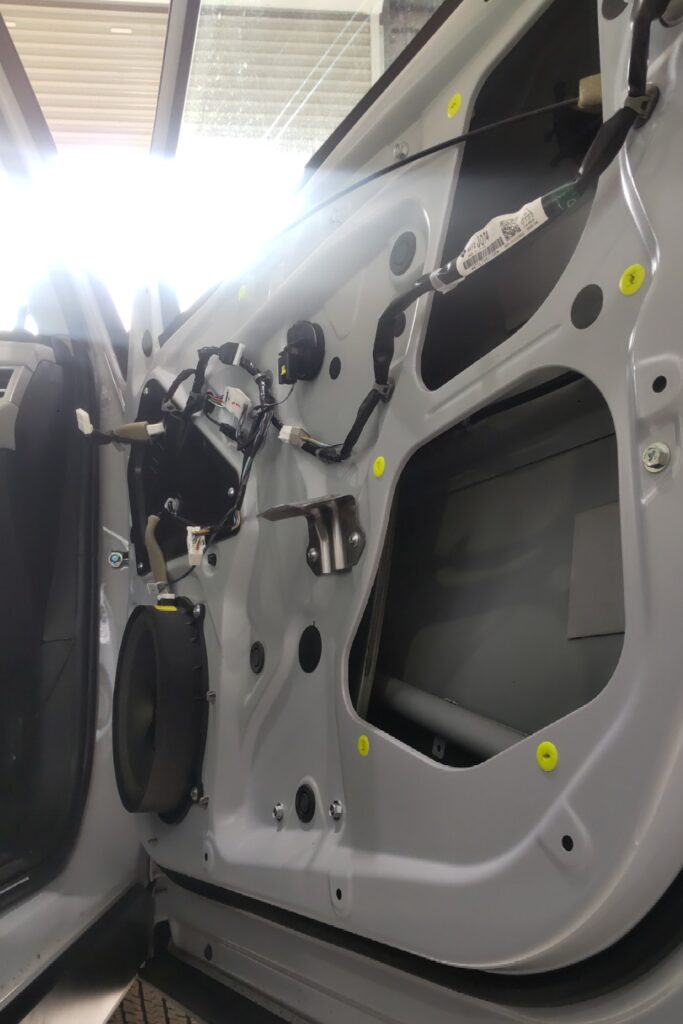 三菱 アウトランダーPHEVのボンネットフード、フロントドア、リアドアの3箇所のへこみのデントリペア