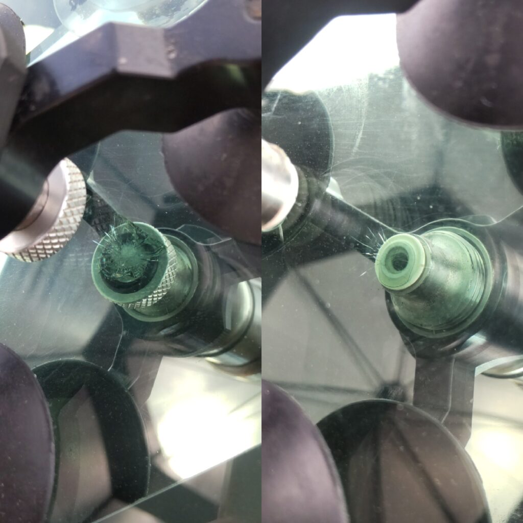 今年の春にトヨタ タンクのウィンドリペアのご依頼を頂いたお客様で、運悪くまたフロントガラスに飛び石が当たったヒビのウィンドリペアをさせて頂きました。