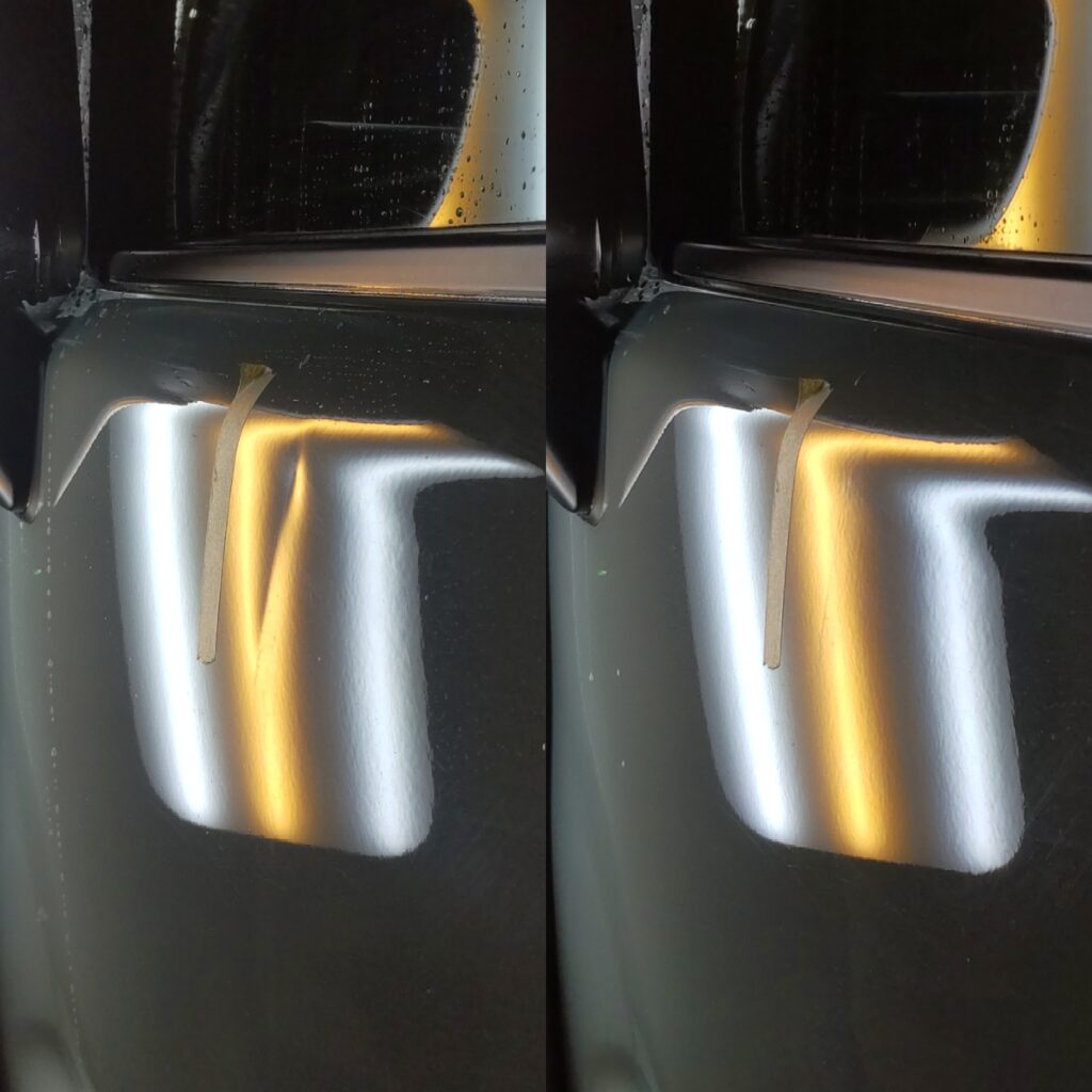 車の凹みをパテ付けや塗装をしないでオリジナル塗装を残したまま修復するデントリペア。