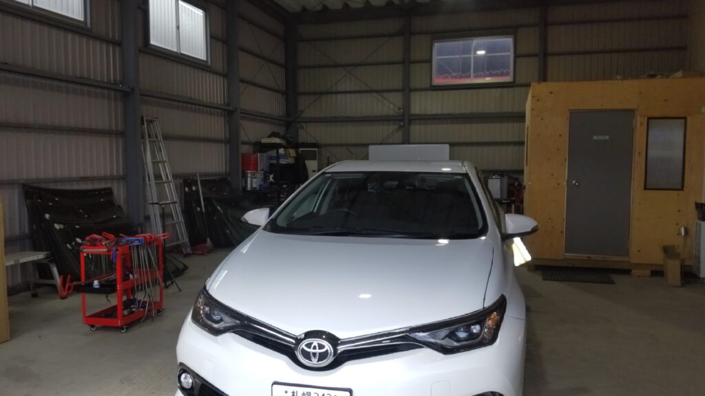 トヨタ オーリスのクォーターパネルのへこみをデントリペアさせて頂きました。