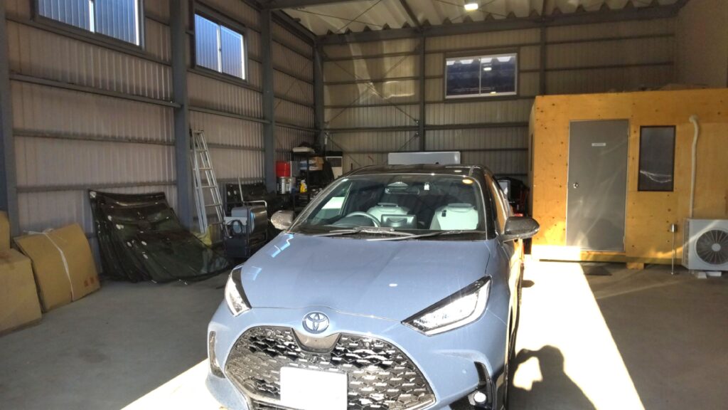 業者様からのご紹介のお客様でトヨタ ヤリスのリアドアのドアパンチのへこみをデントリペアさせて頂きました。