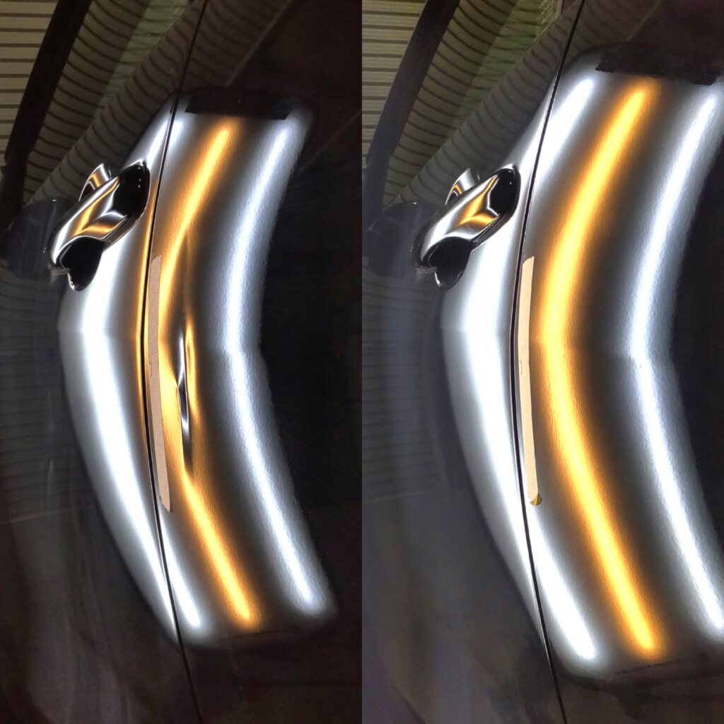 車の凹みをパテ付けや塗装をしないでオリジナル塗装を残したまま修復するデントリペア。