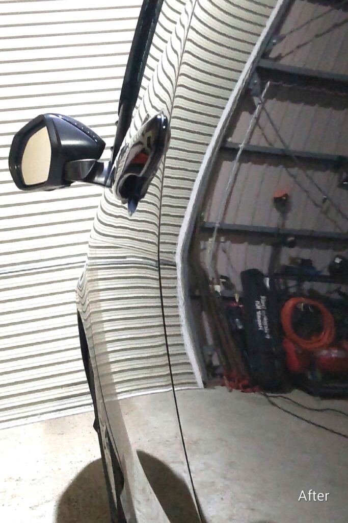 へこんだ際にパネル裏側の補強パネルに当たって付いた折れ目も付いていましたが、折れ目を取り除いて綺麗になりました。
