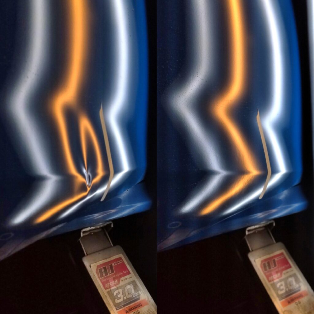 車の凹みをパテ付けや塗装をしないでオリジナル塗装を残したまま修復するデントリペア。