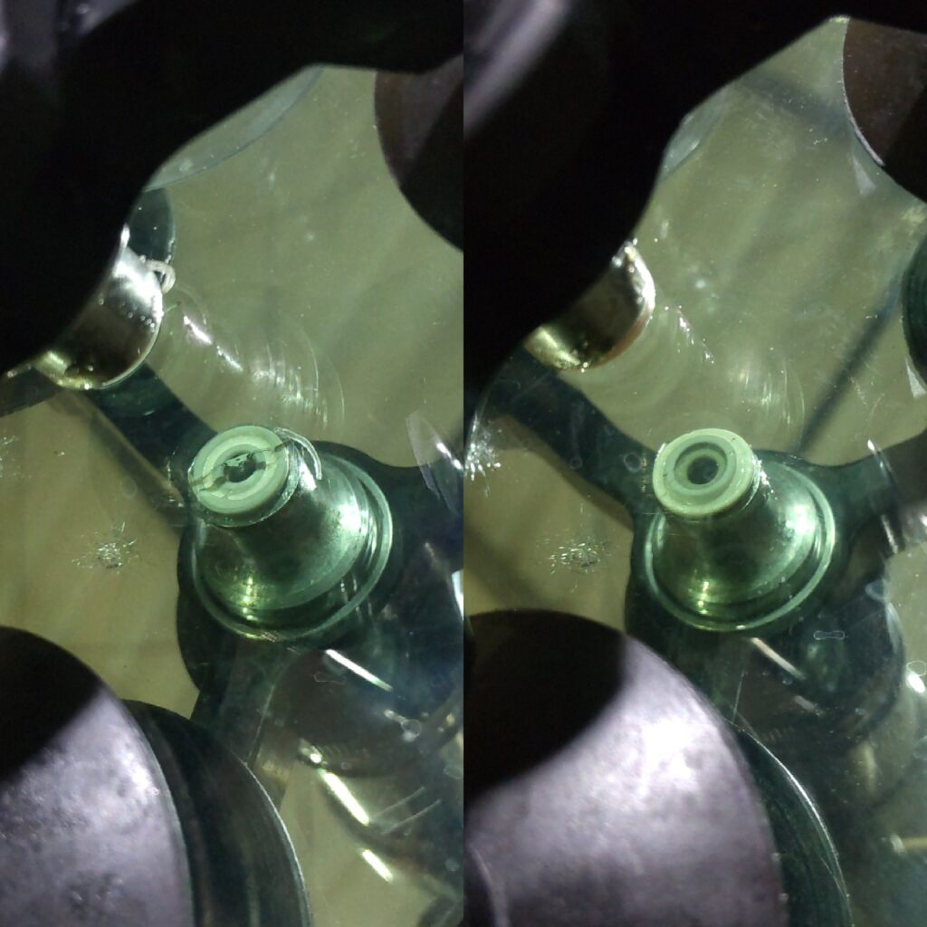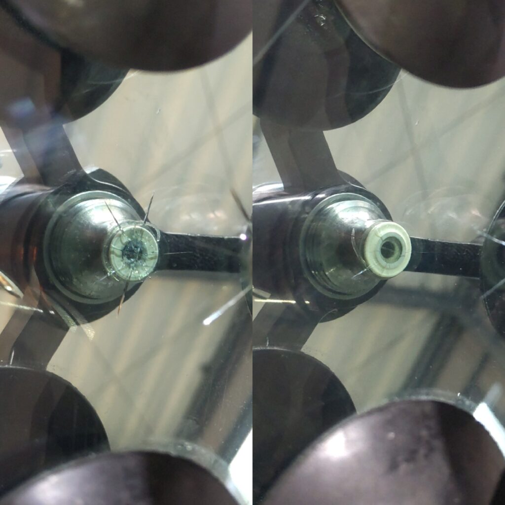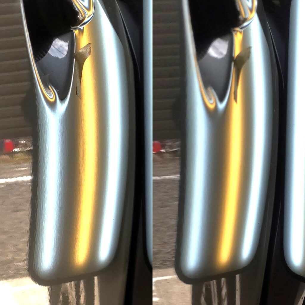 飛び石が当たった際に2箇所ヒビができてしまったようですが、2箇所とも修復しました。