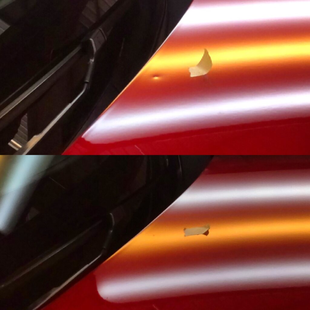 車の凹みをパテ付けや塗装をしないでオリジナル塗装を残したまま修復するデントリペア。