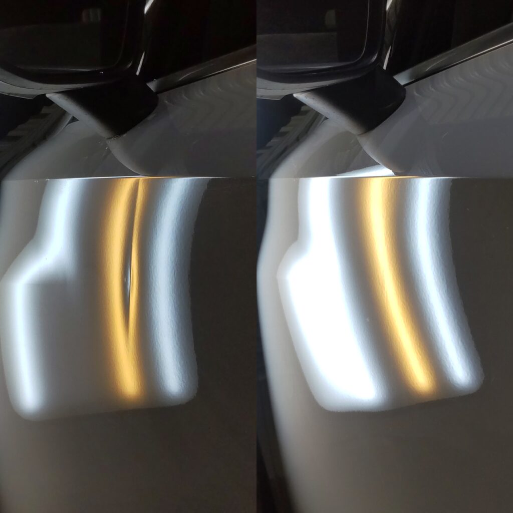 車の凹みをパテ付けや塗装をしないでオリジナル塗装を残したまま修復するデントリペア。