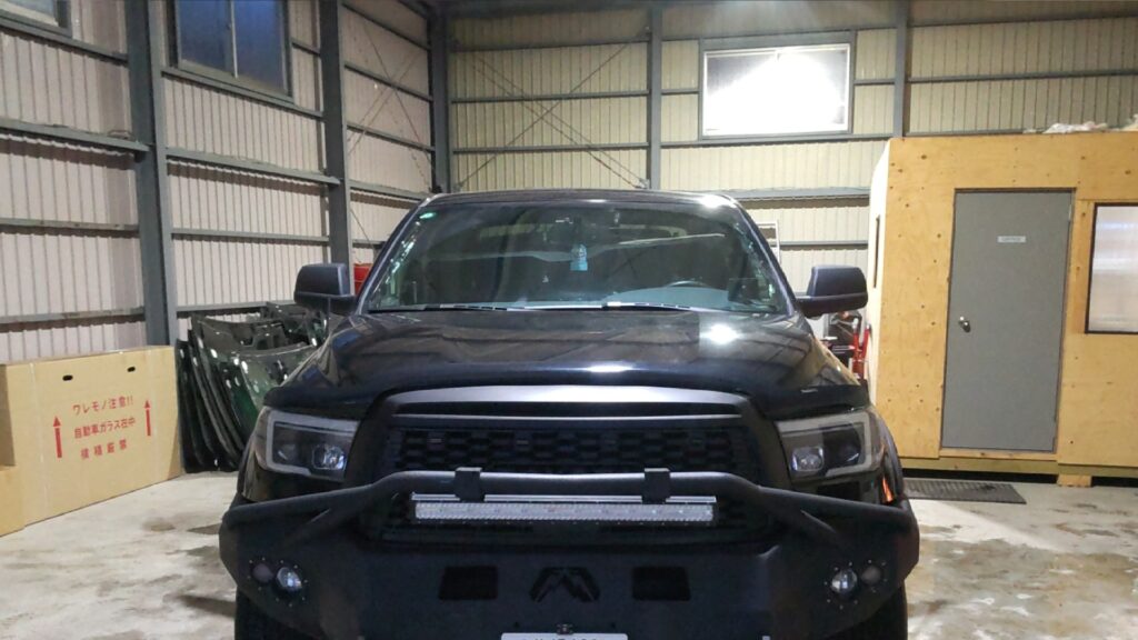 業者様からのご依頼でトヨタ タンドラのルーフの複数箇所のへこみをデントリペアさせて頂きました。