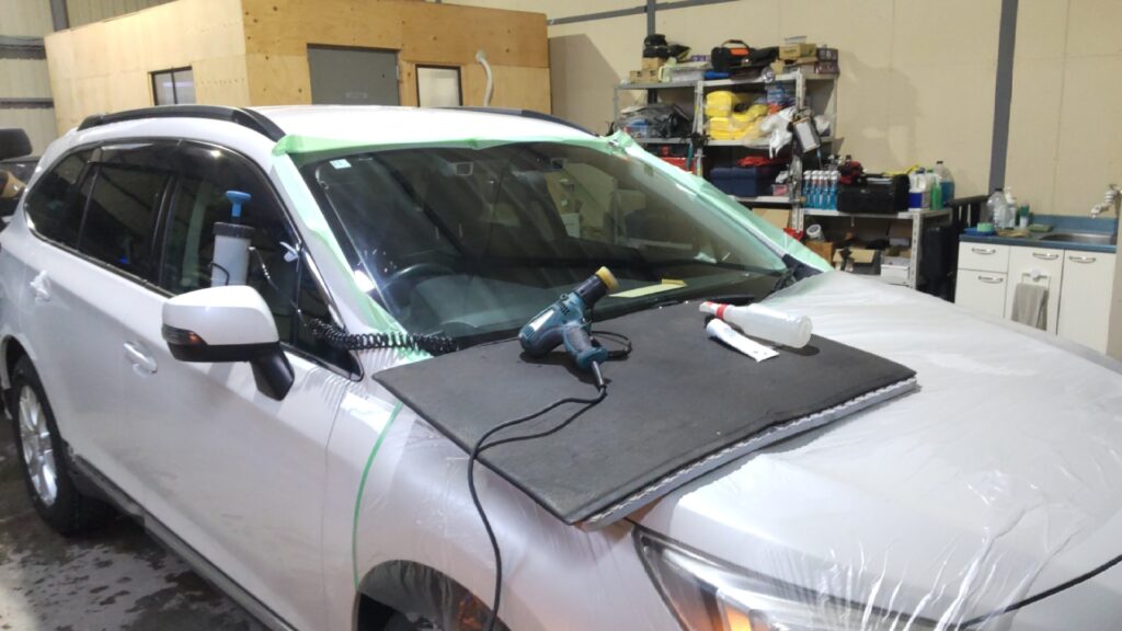 スバル アウトバックのフロントガラスの傷取り研磨をさせて頂きました。