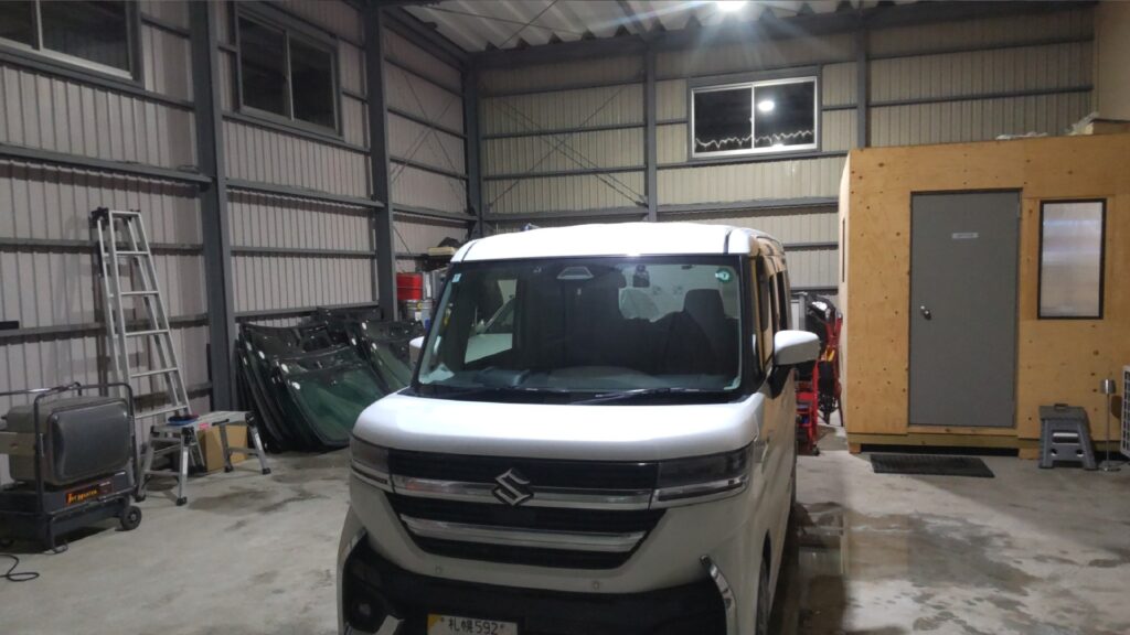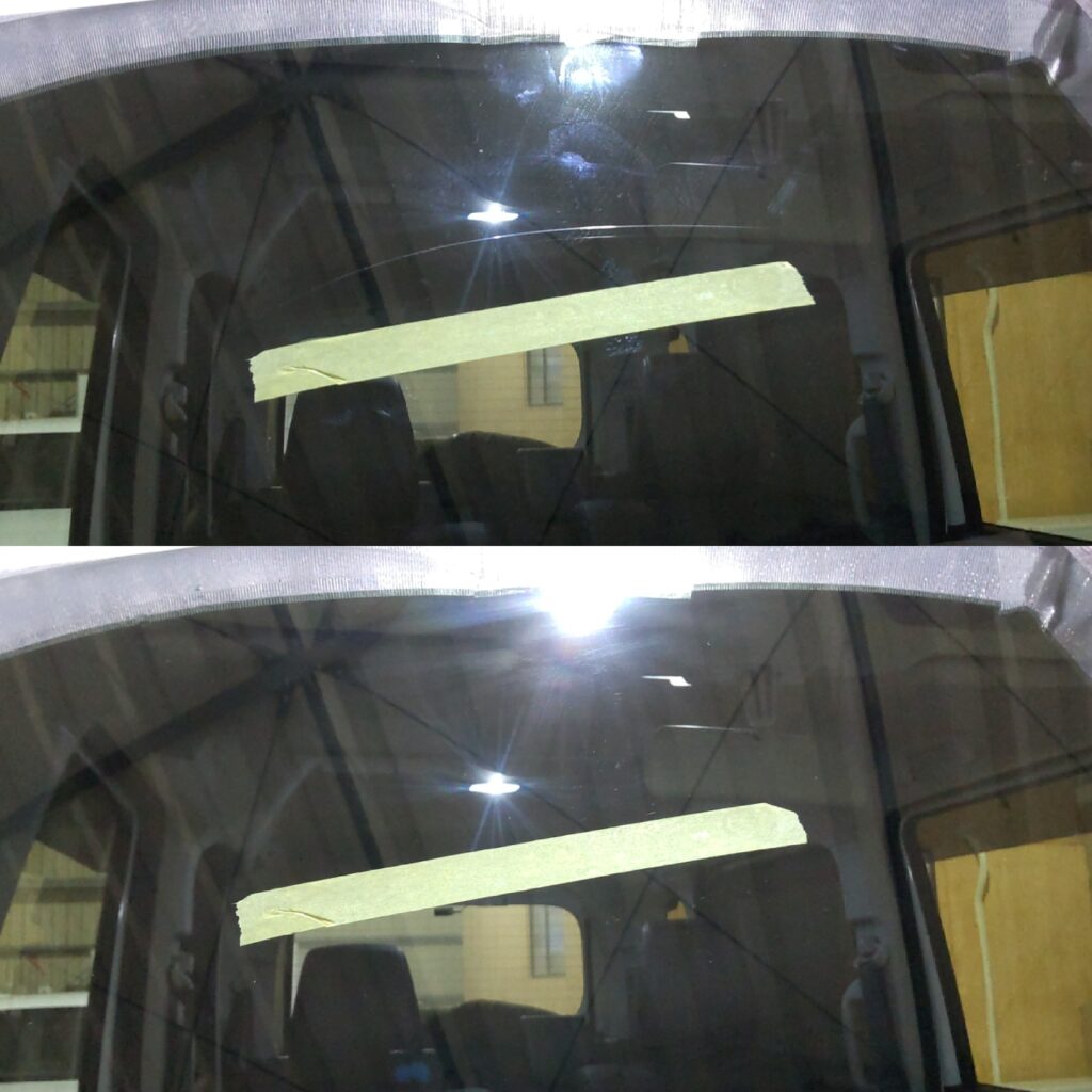 スズキ スペーシアカスタムのフロントガラスの傷取り研磨をさせて頂きました。