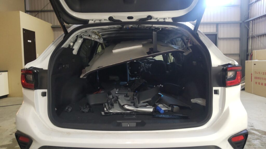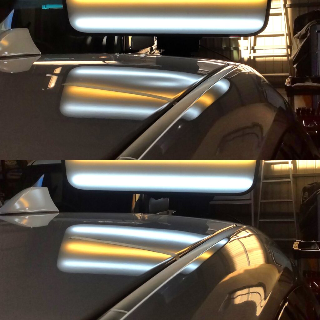 スバル レヴォーグSTiのルーフパネル複数箇所のへこみをデントリペアさせて頂きました。