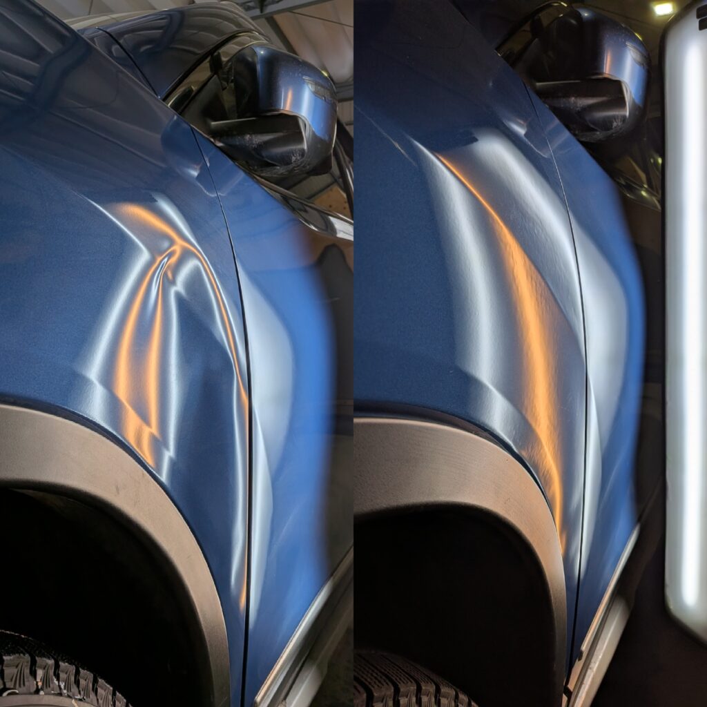 車の凹みをパテ付けや塗装をしないでオリジナル塗装を残したまま修復するデントリペア。
