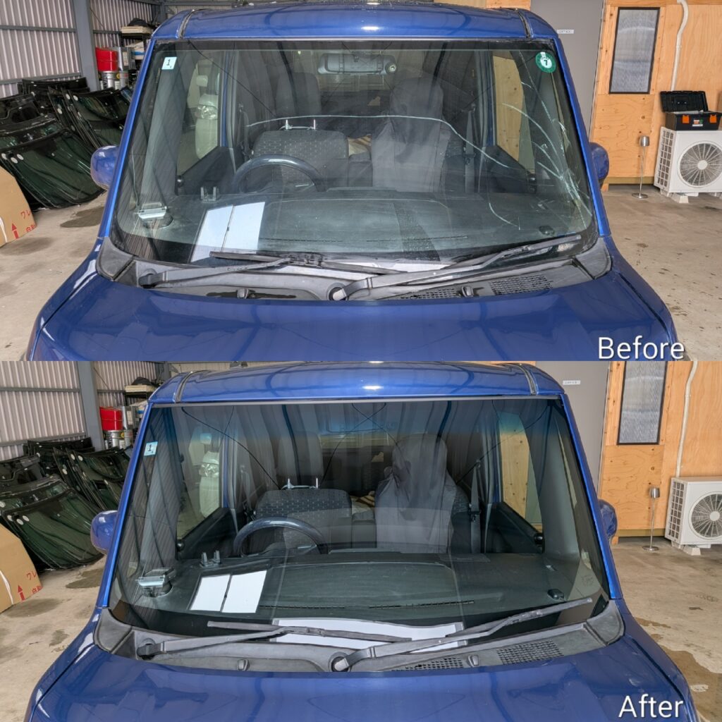ガラスの傷を研磨で綺麗に再生するガラスキズ消し研磨やガラス交換の事なら全て自社施工で特定整備認証工場の創業11年の実績の当店にお任せ下さい。