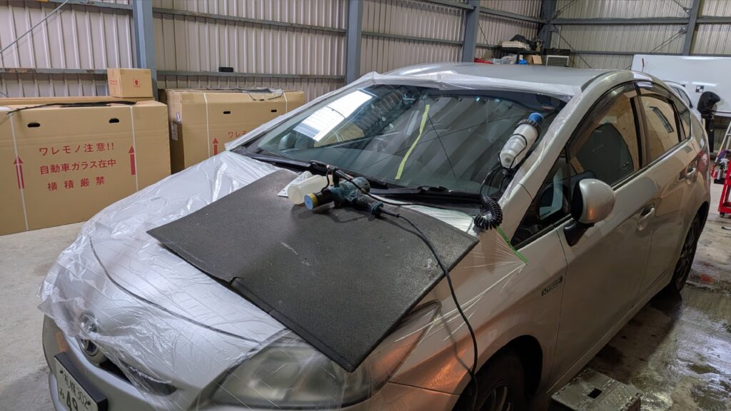 トヨタ プリウスのフロントガラスの傷取り研磨をさせて頂きました。