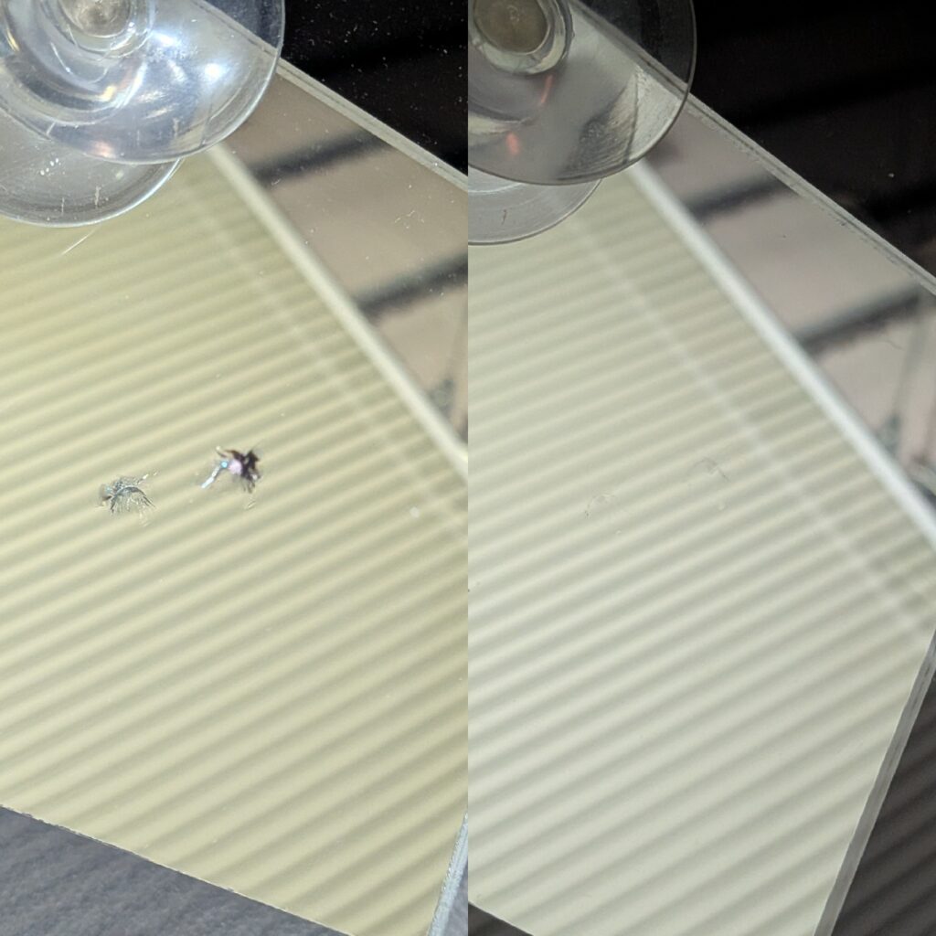 ガラスの傷を研磨で綺麗に再生するガラスキズ消し研磨やガラス交換の事なら全て自社施工で特定整備認証工場の創業11年の実績の当店にお任せ下さい。