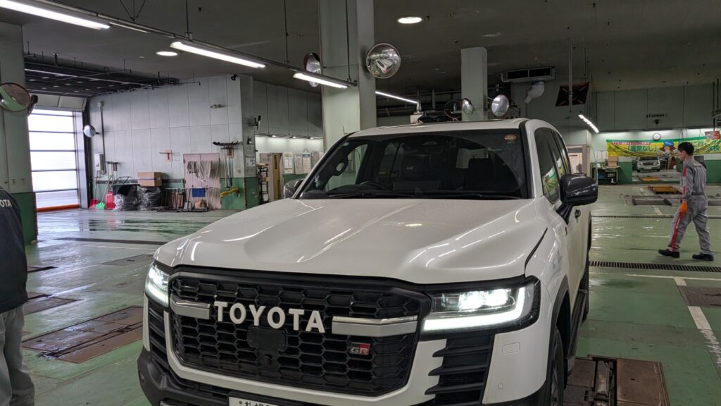業者様への出張修理でトヨタ ランドクルーザーGR SPORTのボンネットのデントリペアをさせて頂きました。