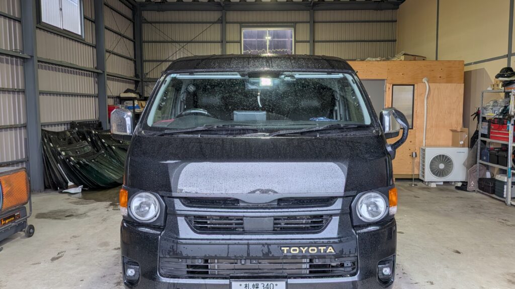 トヨタ ハイエースのサイドパネル3箇所のへこみをデントリペアさせて頂きました。