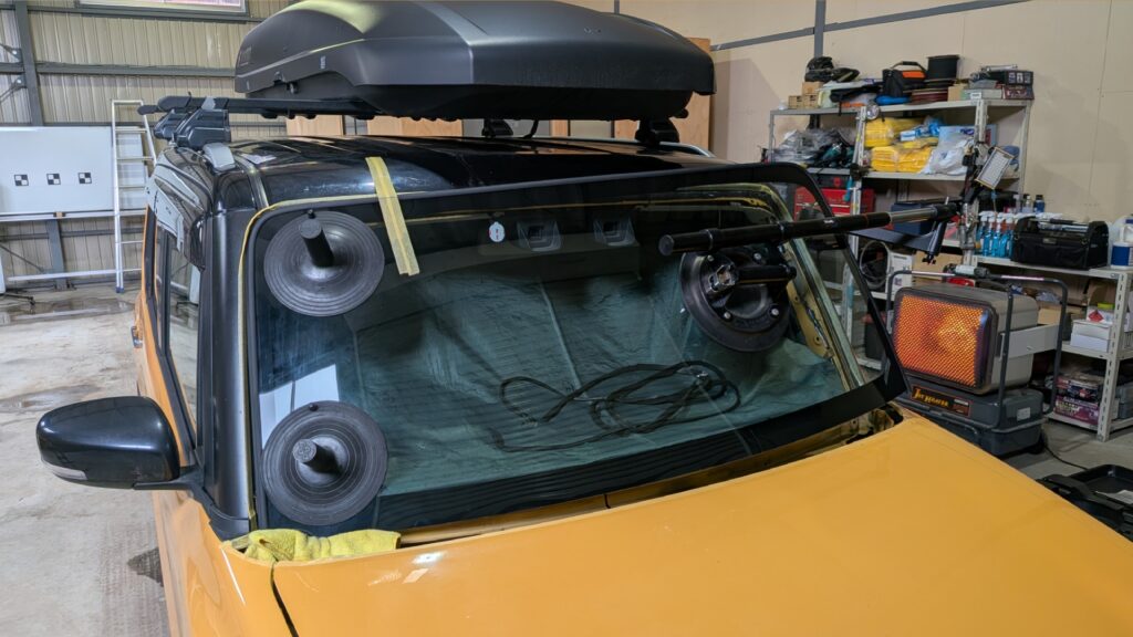 スズキソリオバンディットのフロントガラスのヒビ割れのウィンドリペア