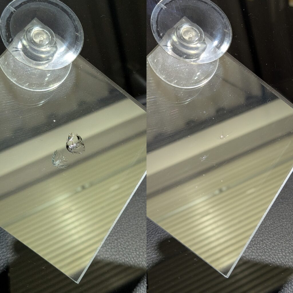ガラスの傷を研磨で綺麗に再生するガラスキズ消し研磨やガラス交換の事なら全て自社施工で特定整備認証工場の創業11年の実績の当店にお任せ下さい。