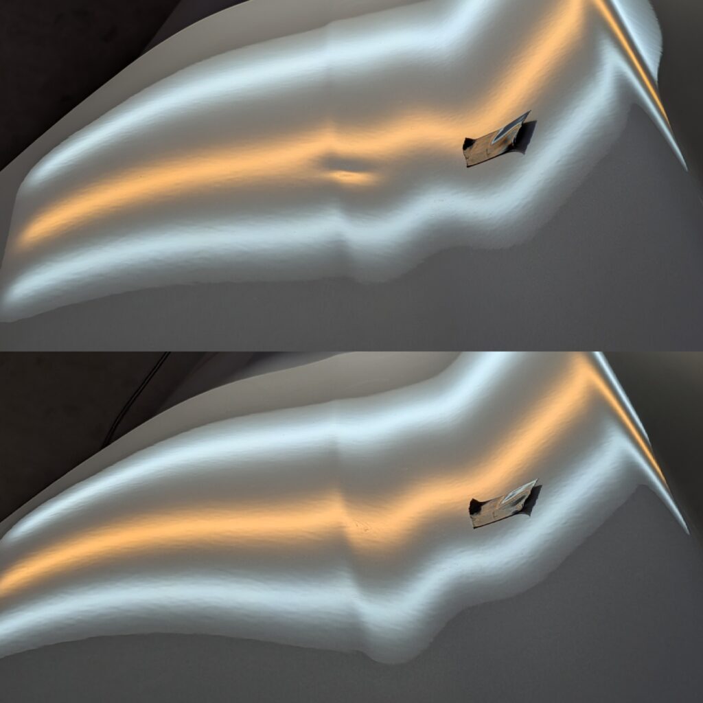 車の凹みをパテ付けや塗装をしないでオリジナル塗装を残したまま修復するデントリペア。