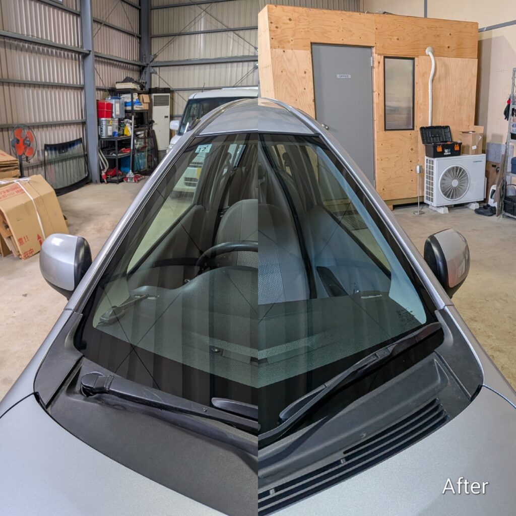 ガラスの傷を研磨で綺麗に再生するガラスキズ消し研磨やガラス交換の事なら全て自社施工で特定整備認証工場の創業11年の実績の当店にお任せ下さい。