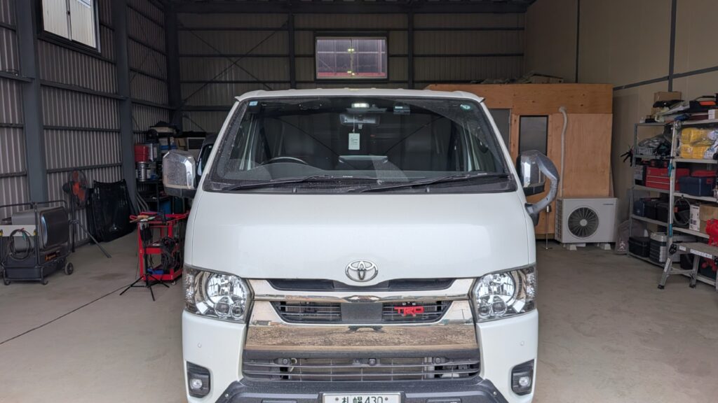 トヨタ ハイエースのリアピラーのへこみをデントリペアをさせて頂きました。