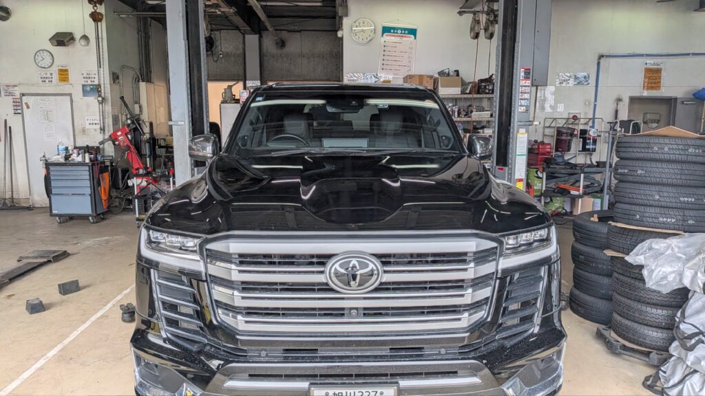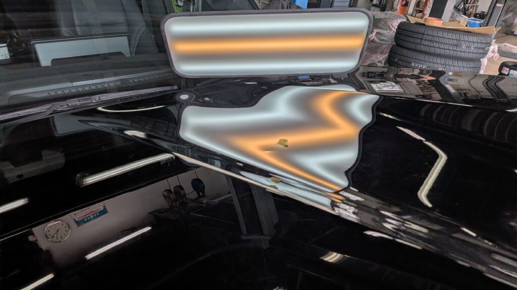 業者様への出張修理でトヨタ ランドクルーザー300のボンネット(アルミパネル)のへこみをデントリペアさせて頂きました。