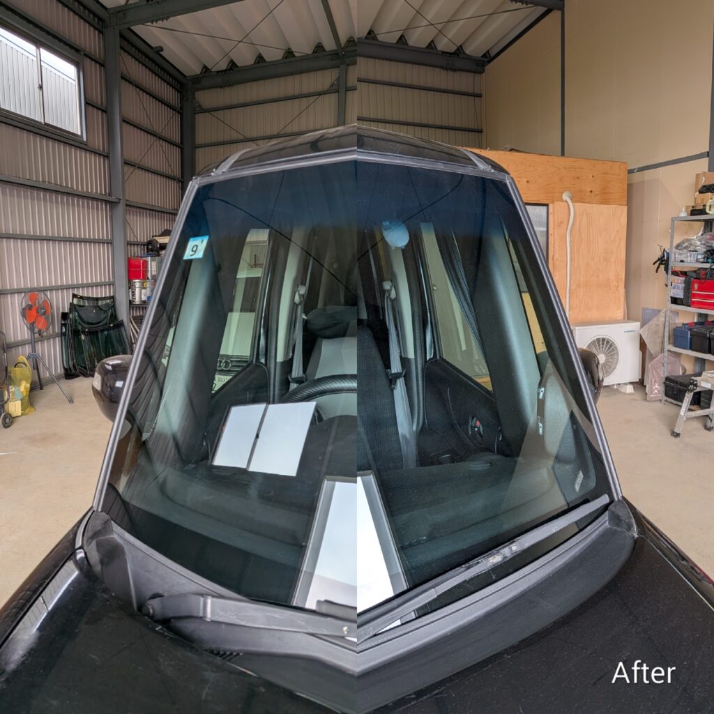 ガラスの傷を研磨で綺麗に再生するガラスキズ消し研磨やガラス交換の事なら全て自社施工で特定整備認証工場の創業11年の実績の当店にお任せ下さい。