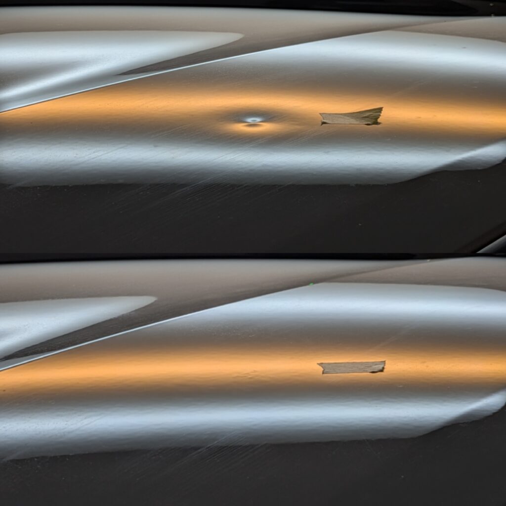 トヨタ プリウスのルーフパネルとボンネット(アルミパネル)2箇所のへこみのデントリペア