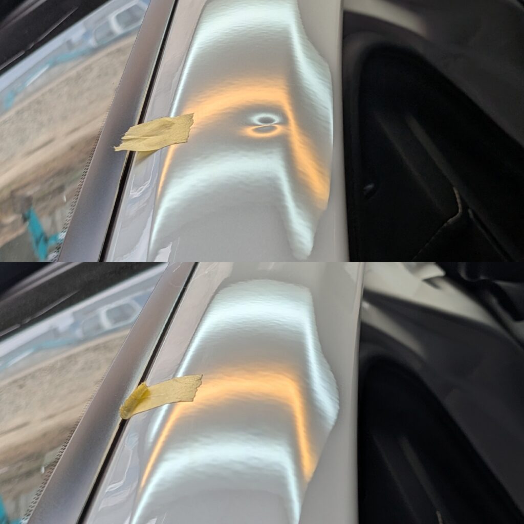 車の凹みをパテ付けや塗装をしないでオリジナル塗装を残したまま修復するデントリペア。