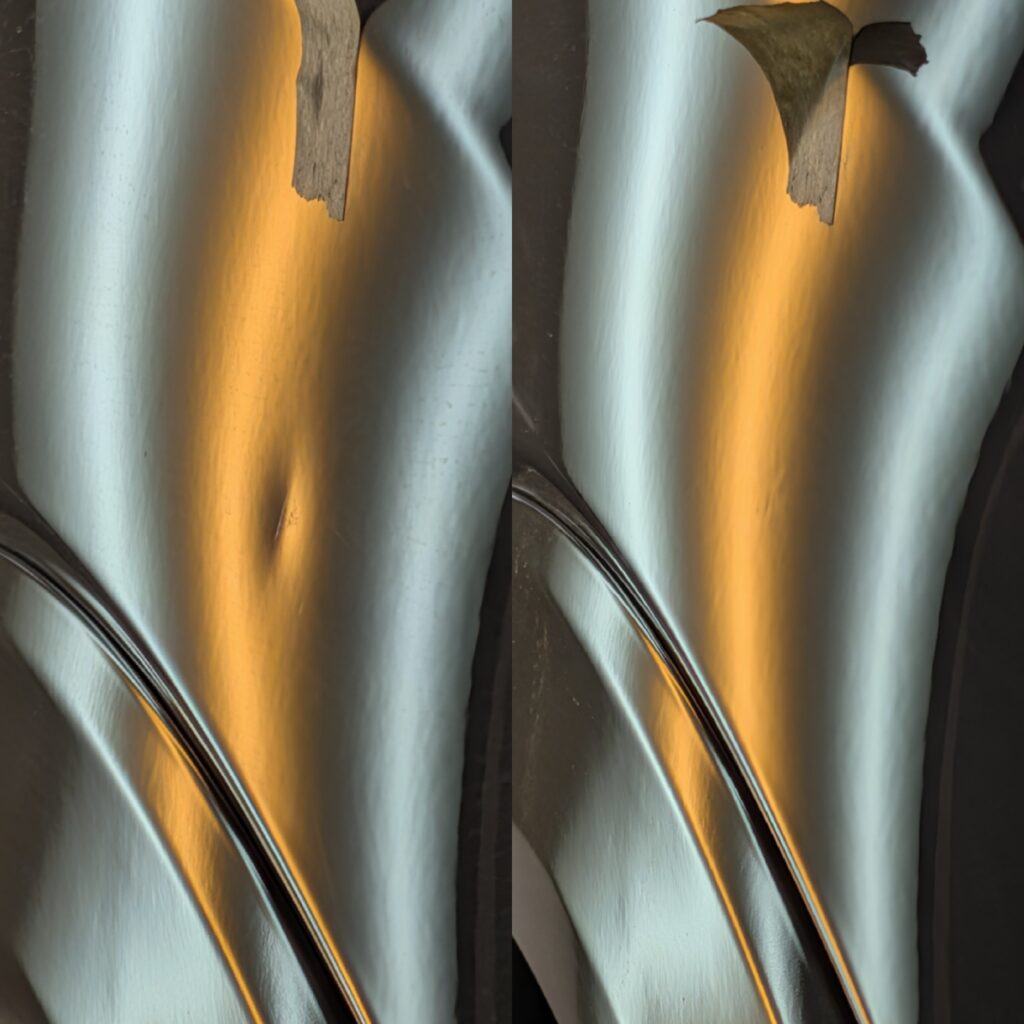 車の凹みをパテ付けや塗装をしないでオリジナル塗装を残したまま修復するデントリペア。