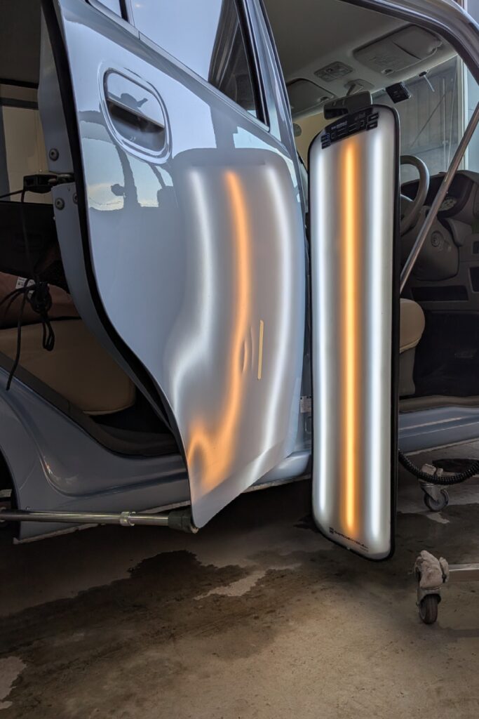 車の凹みをパテ付けや塗装をしないでオリジナル塗装を残したまま修復するデントリペア。