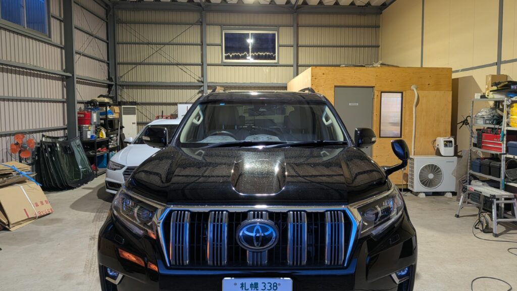 トヨタ ランドクルーザープラドのボンネット2箇所のへこみをデントリペアさせて頂きました。