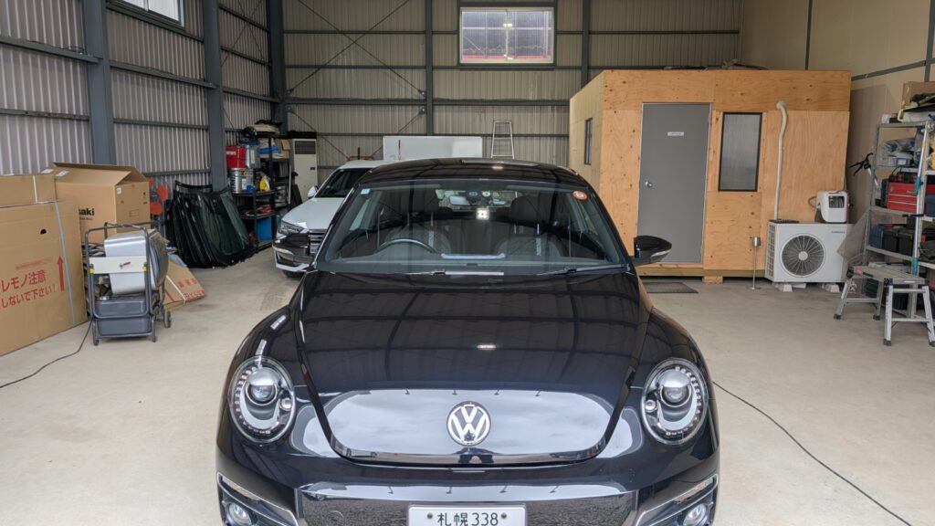 フォルクスワーゲン ビートルのバックドアのへこみをデントリペアさせて頂きました。