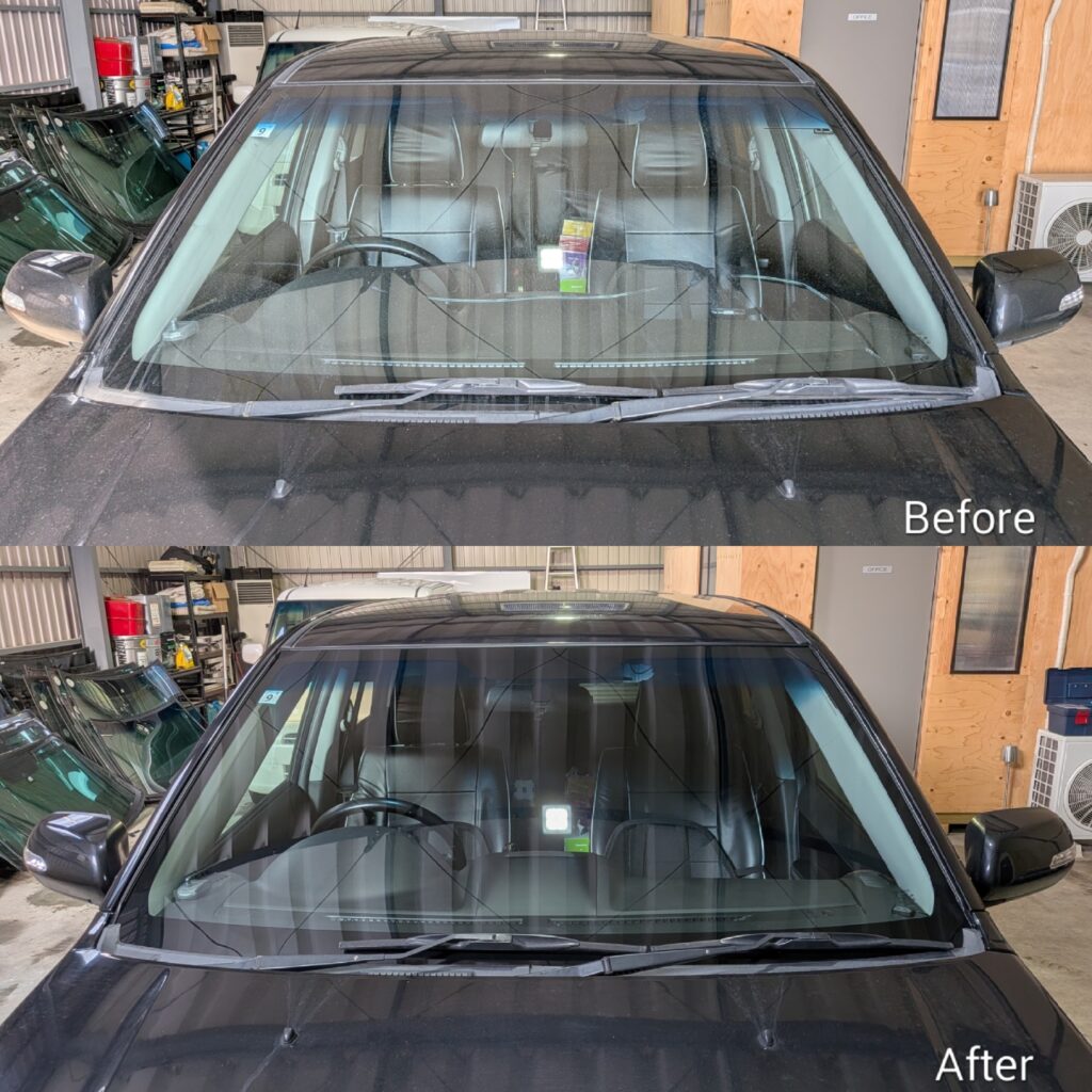 ガラスの傷を研磨で綺麗に再生するガラスキズ消し研磨やガラス交換の事なら全て自社施工で特定整備認証工場の創業11年の実績の当店にお任せ下さい。