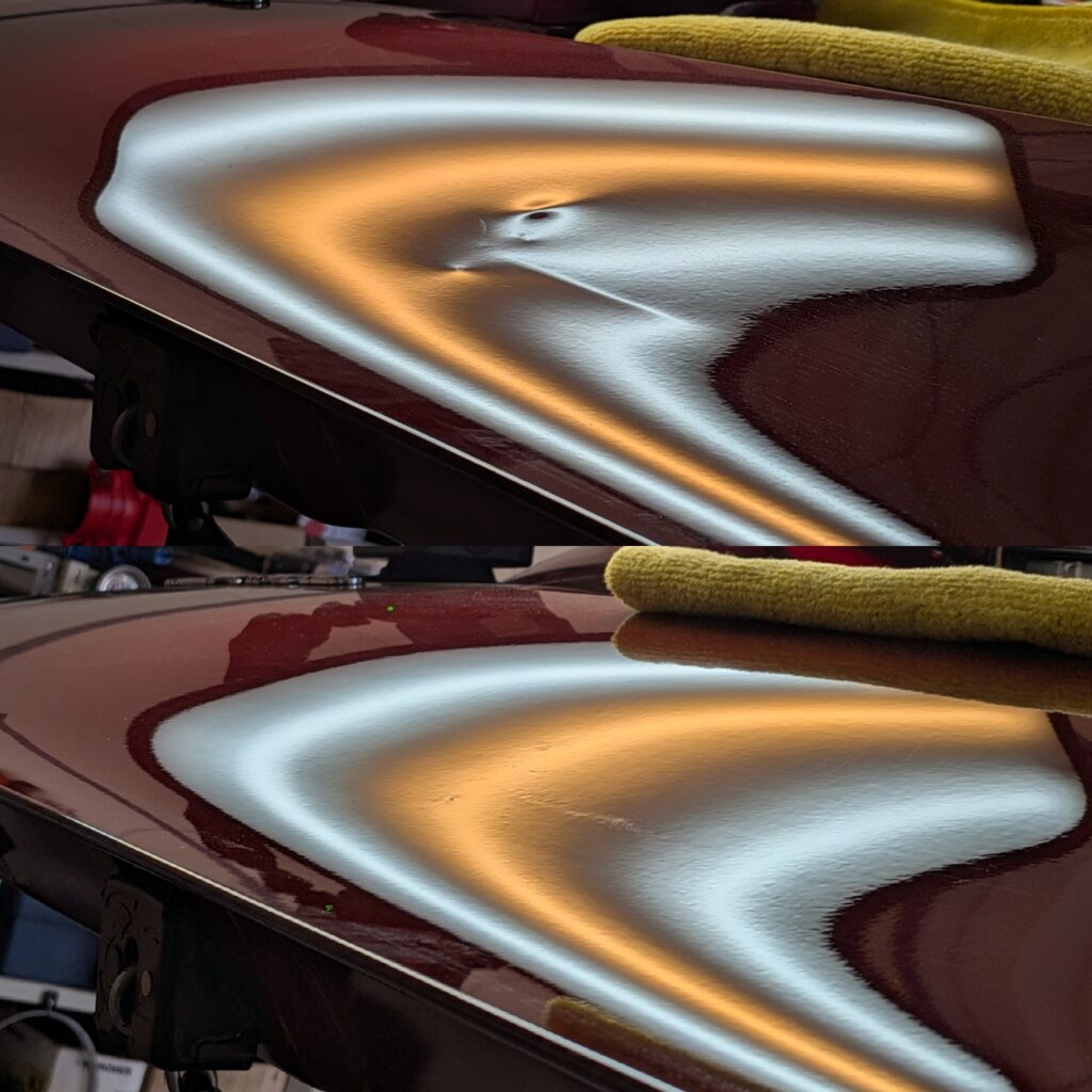 車の凹みをパテ付けや塗装をしないでオリジナル塗装を残したまま修復するデントリペア。