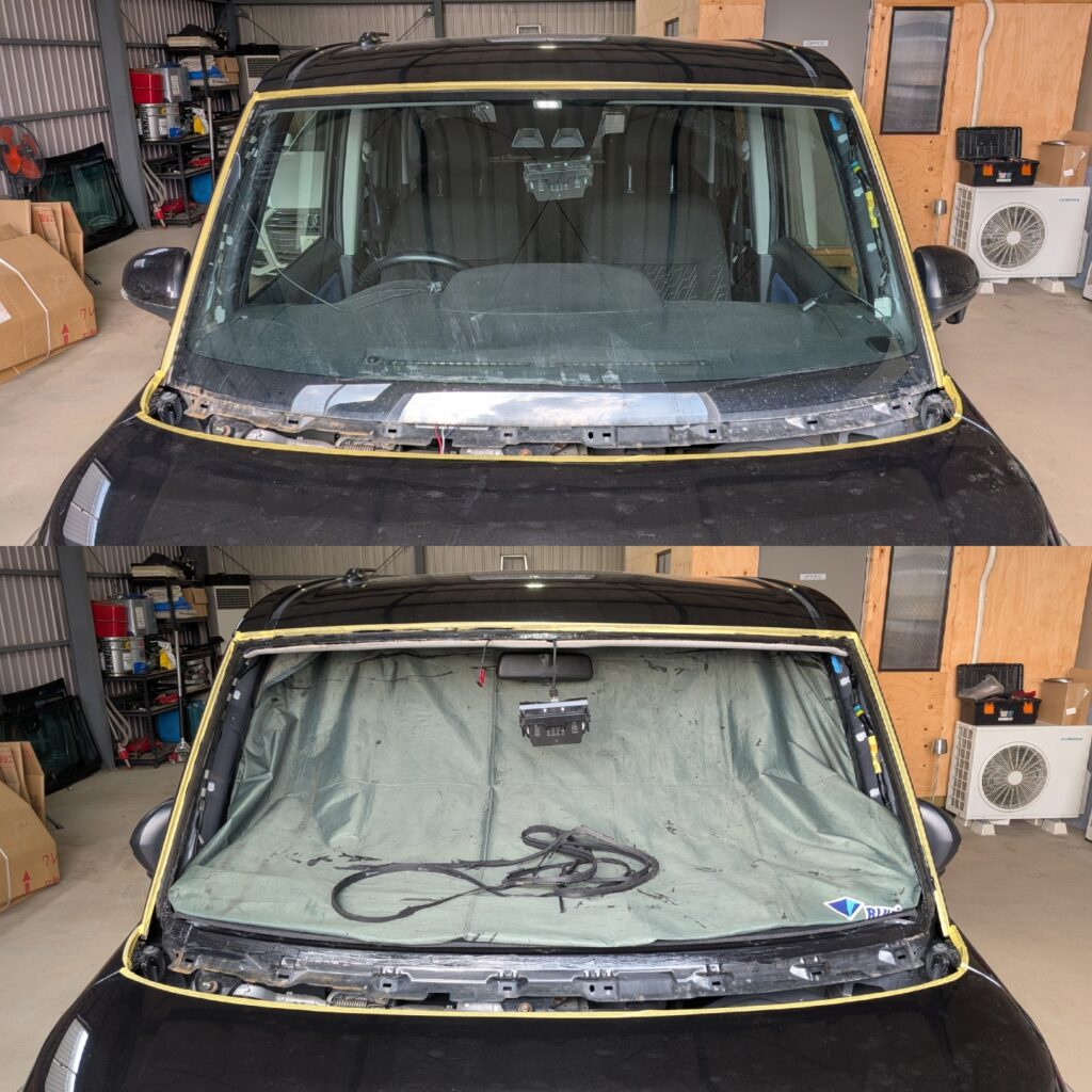 以前もフロントガラス交換のご依頼を頂いたことのあるお客様で今回も飛び石によりトヨタ ルーミーのフロントガラス交換をさせて頂きました。