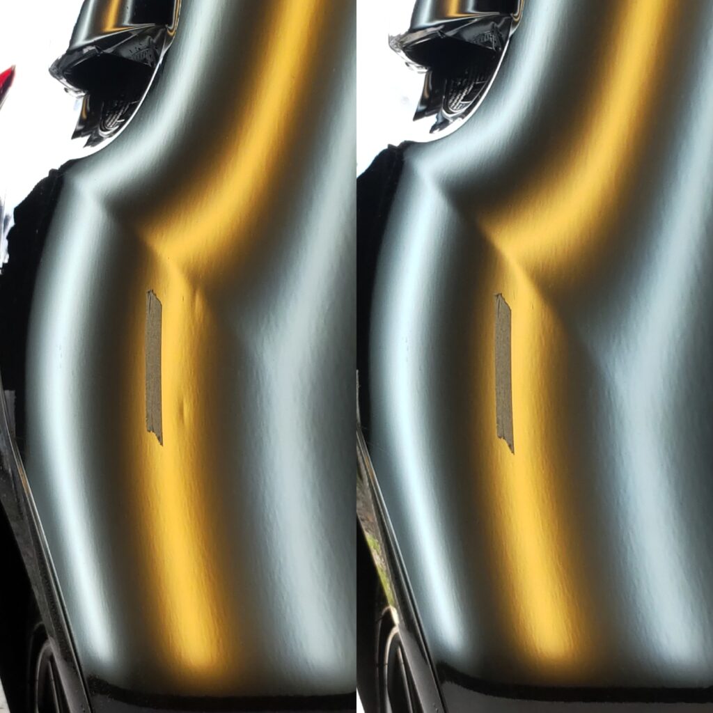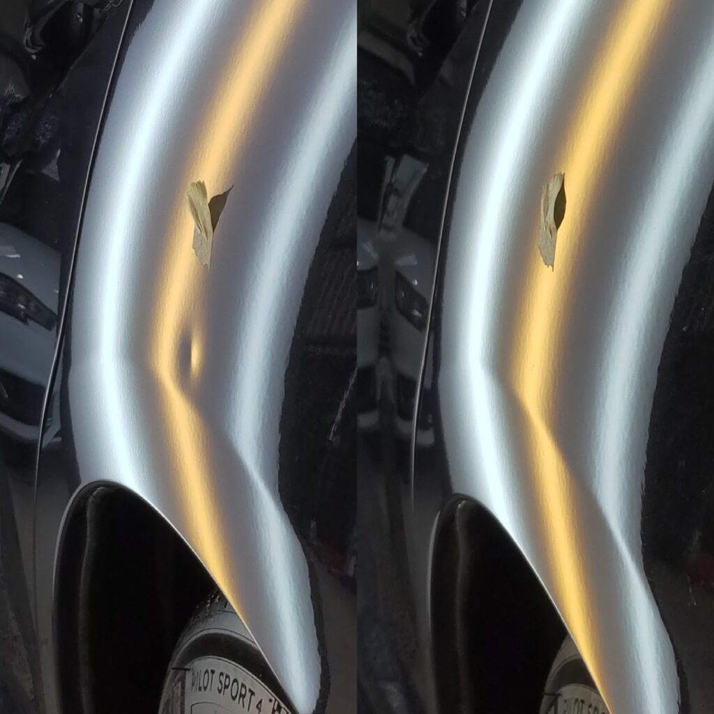 車の凹みをパテ付けや塗装をしないでオリジナル塗装を残したまま修復するデントリペア。